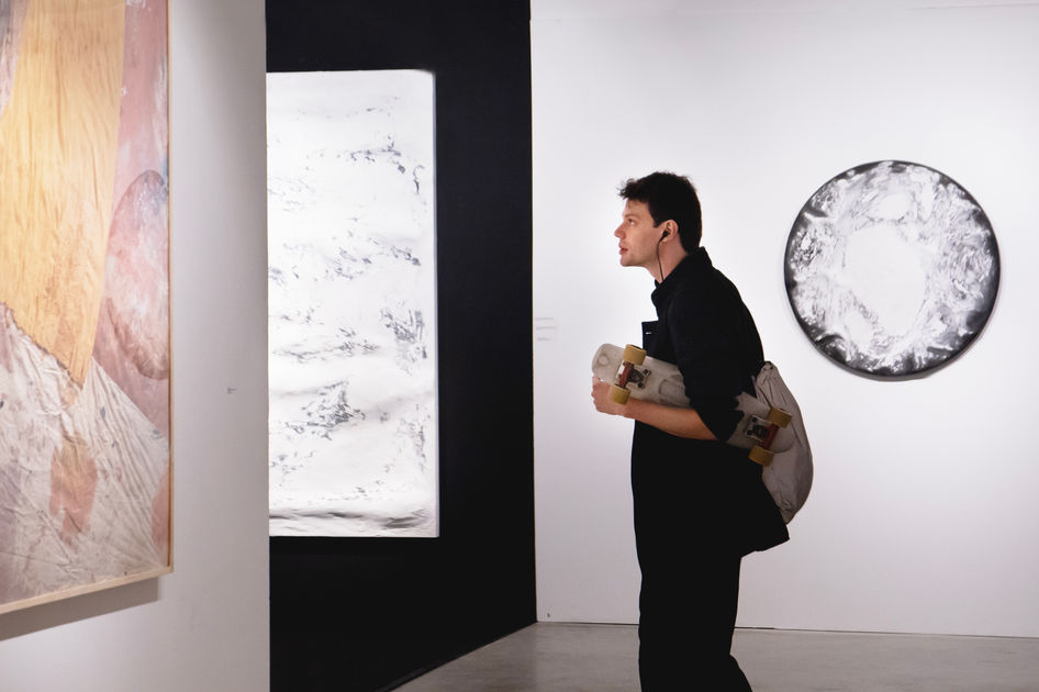 In her desire to safeguard something, Yohannah flirts with the passage of time, equipped with ways to delay its effects. In O que eu deixo vazar (What I Let Seep), the earthy and mineral palette instills a sense of something ancient, terrestrial, or archetypal, while its composition uses durable components like glue, acrylic, and polymers. There is no opposition between the natural and the artificia —everything is crafted.